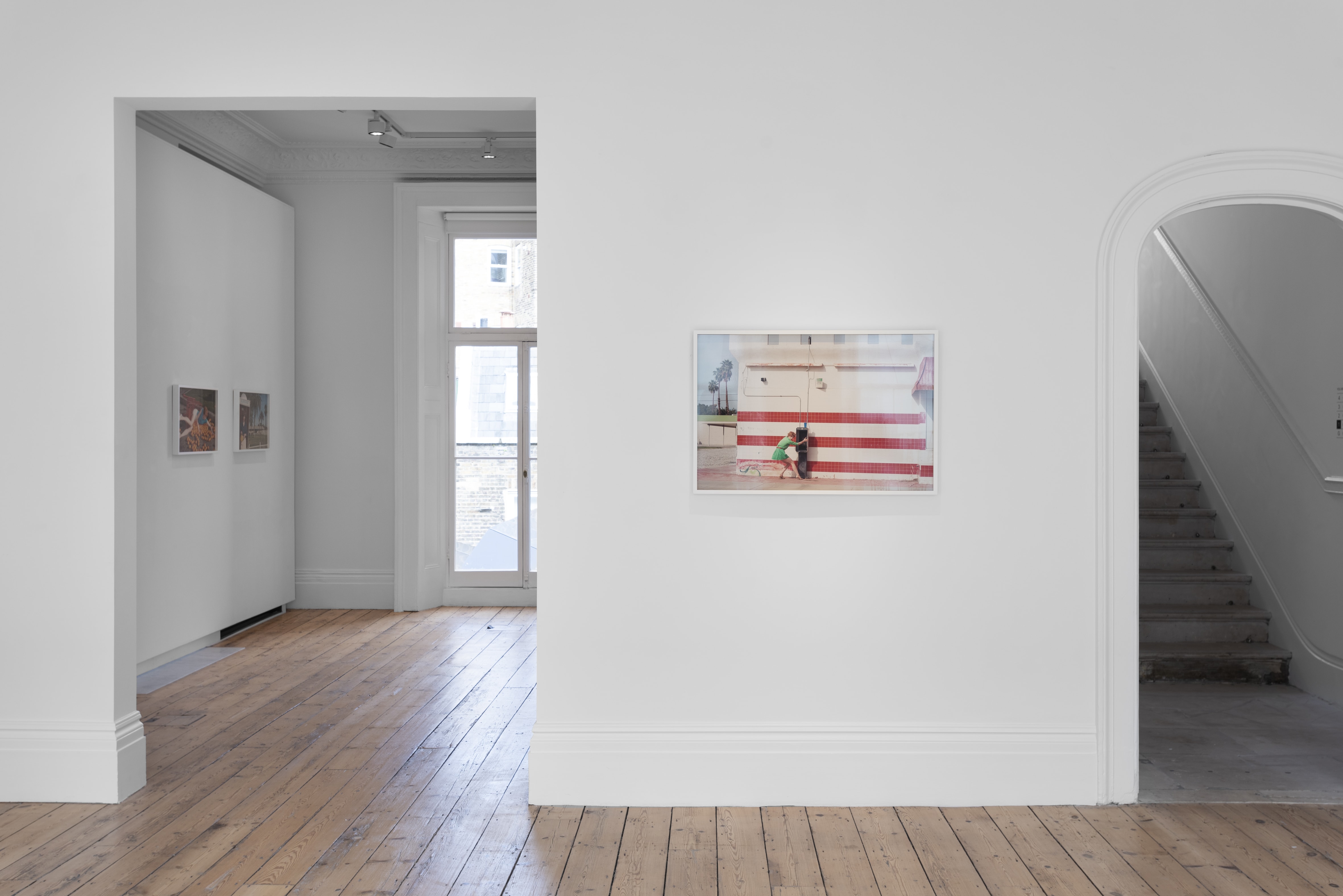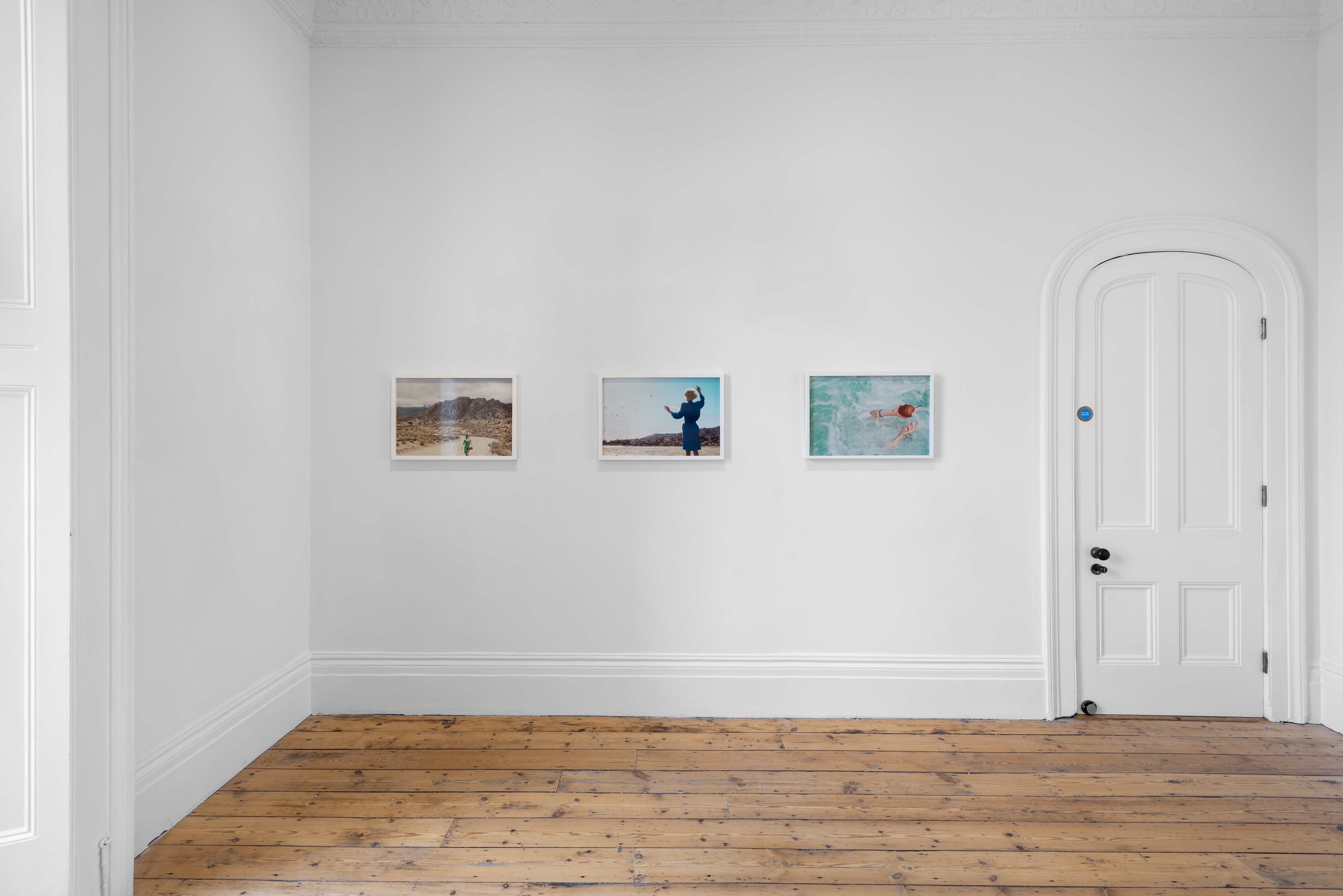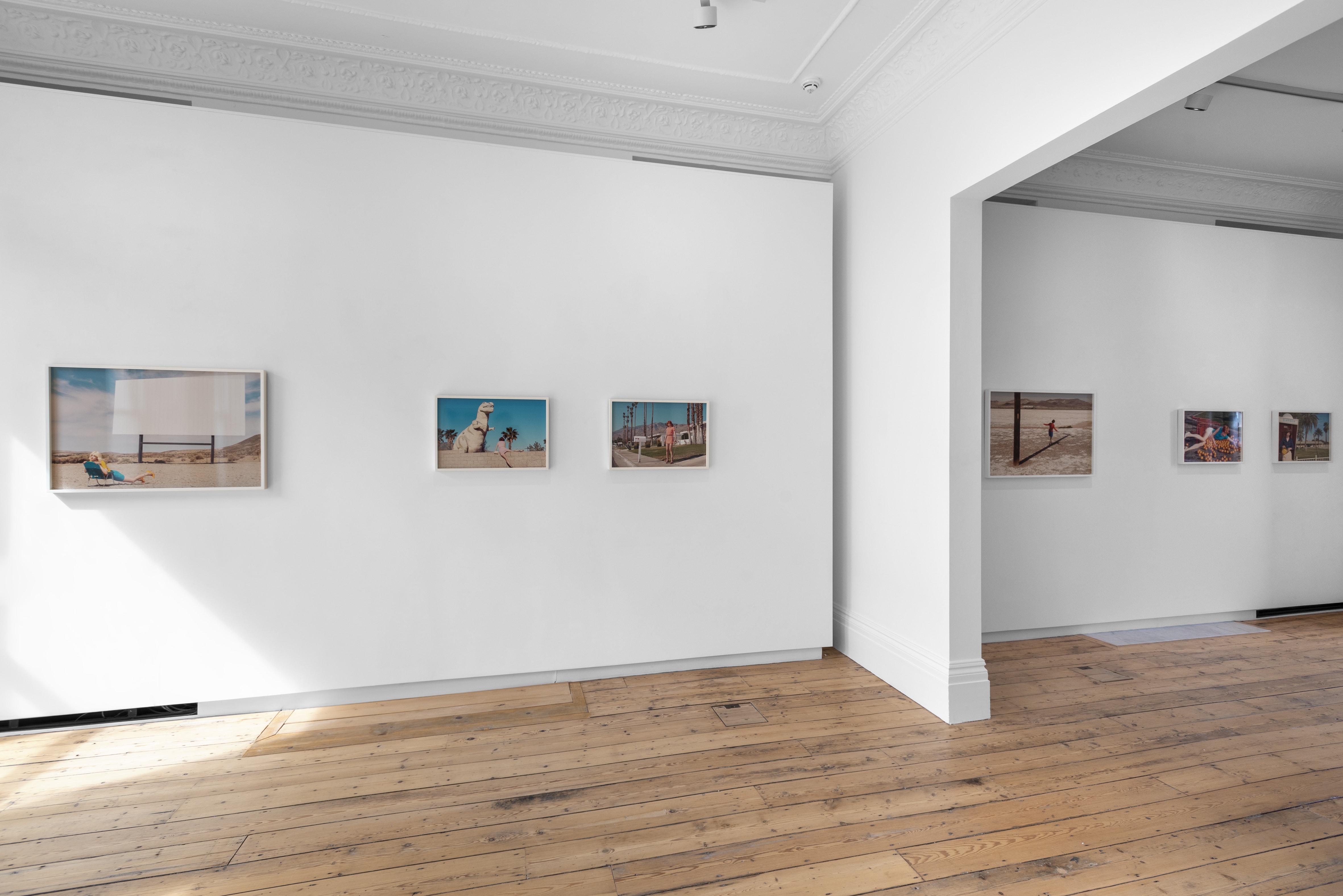 Kourtney Roy’s work is bound up in an ambiguous and cinematic image-making that borders the real and the fantastical. Roy has produced several series which play with this idea of the bizarre, creating hyper-realistic images that resemble film stills. The twelve works on display, all from Enter as Fiction, express the artist’s unique style through the artificial staging of her body in otherwise mundane scenes, directing the camera on overlooked fragments of the landscape to render the quotidian uncanny.